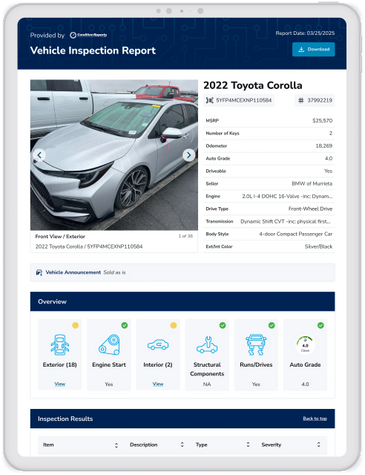 End-to-end car auction platform connecting inspectors, sellers, and auction sites.